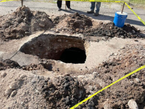 Reparación de línea de drenaje de calle Noche Buena.
