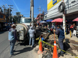 Reparación de fuga de agua potable de gran tamaño, Av. Morelos, San Cristóbal Centro.