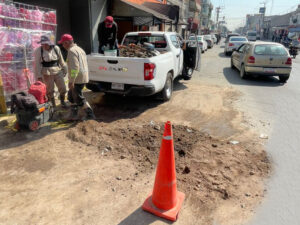 Se llevó a cabo la reparación de una fuga de agua de gran tamaño, que se ubicaba en Av. Morelos en San Cristóbal Centro; quedando reparada en poco tiempo, evitando el desperdicio de miles de litros.